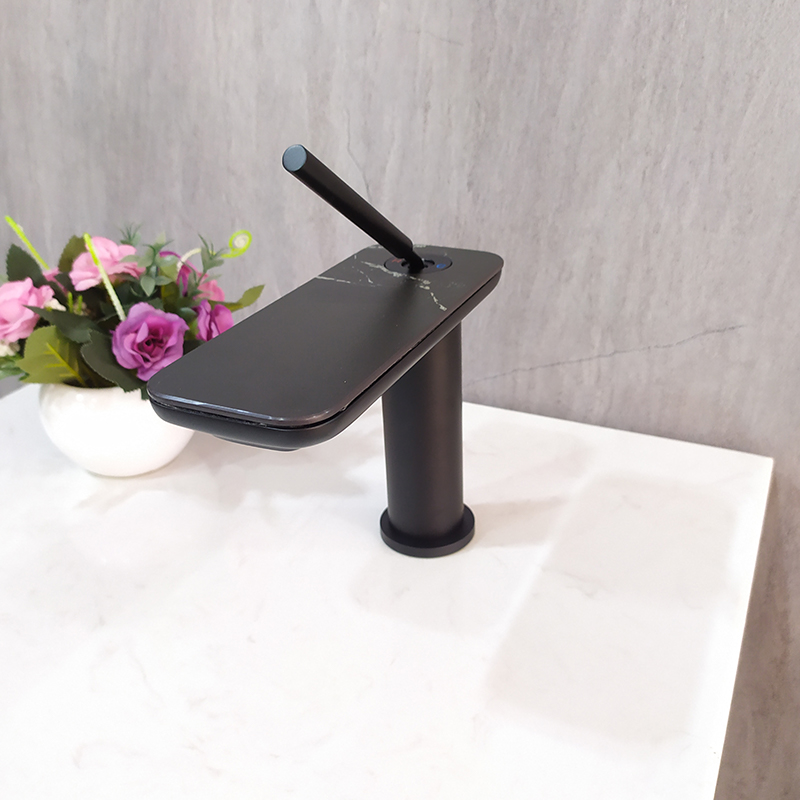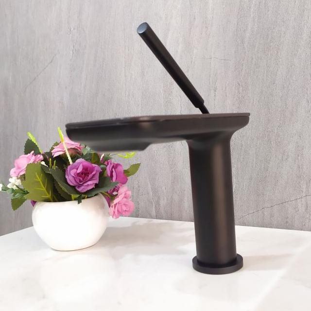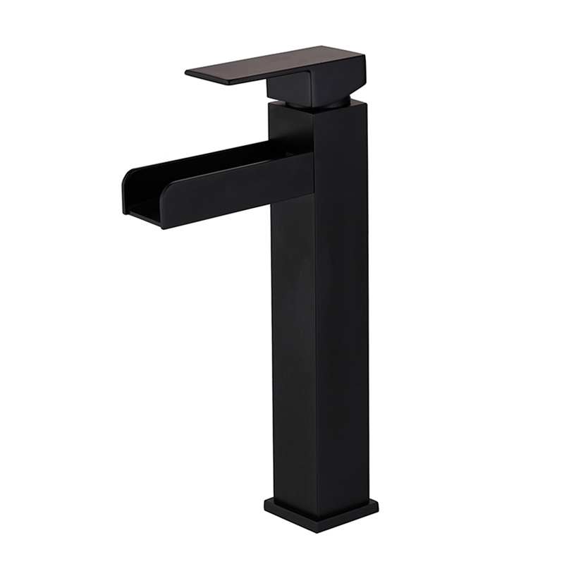 Matte Black Faucet Modern Single Handle One Hole Deck Mount Vanity Faucets Waterfall Lead-Free Tap