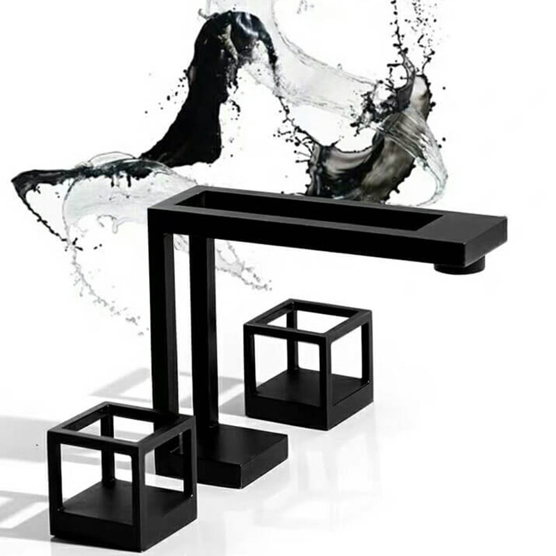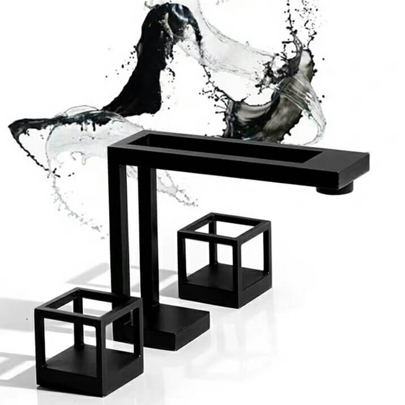 Square Brass Black Basin Tap Hot&Cold Water Mixer Bathroom Hand Washing Sink Faucet