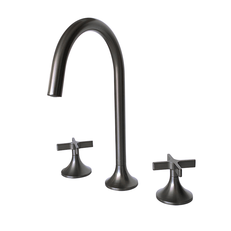 Modern Single Handle Bathroom Faucet Solid Brass 3-Holes Basin Mixer Tap Gun Grey Basin Faucet
