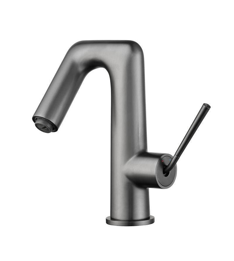 Single Hole Basin Sink Bathroom Faucet Gun Grey Modern Hot and Cold Water Mixer Tap for Lavatory Vanity Washroom