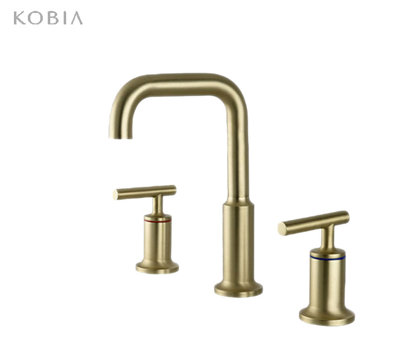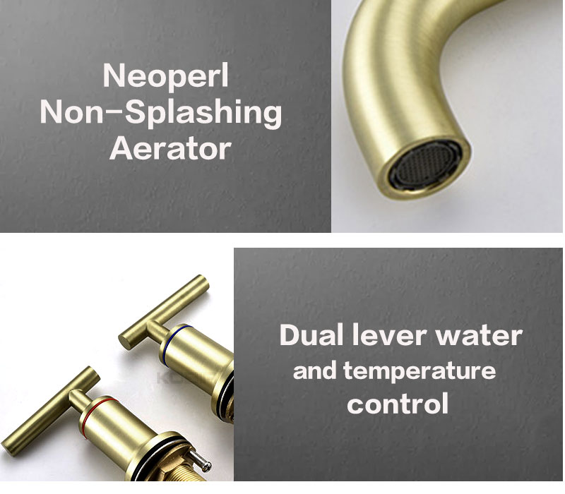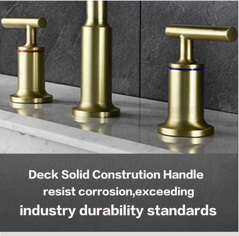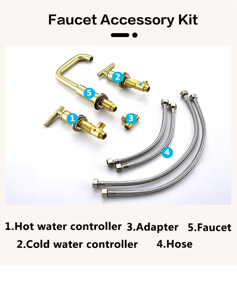 Brush Gold Bathroom Faucet 8 Inch Widespread Bathroom Faucet 3 Hole Vanity Faucet with Supply Hoses