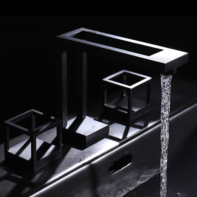 Black Bathroom Faucet 8 Inch Widespread Bathroom Faucet 3 Hole Vanity Faucet with Supply SUS 304 Hoses