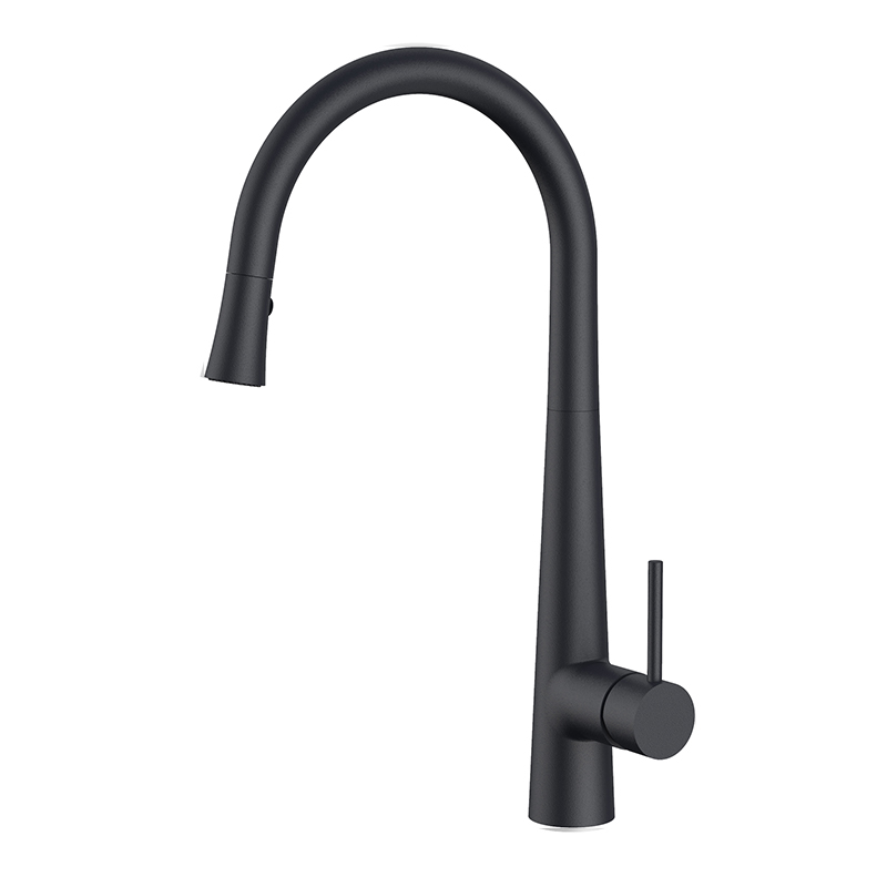 Gooseneck Single Hole Kitchen Faucet Deck Mounted Pill Down Out Black Kitchen Sink Tap