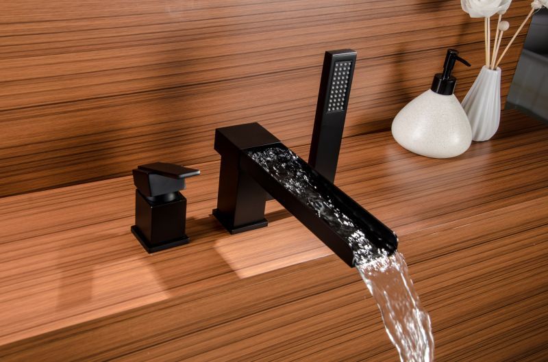 Tub Faucet with HandHeld Shower Matte Black Bathtub Faucet Waterfall Tub Filler with Sprayer 3-Holes Widespread Faucet Set