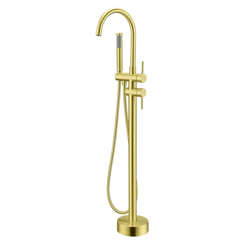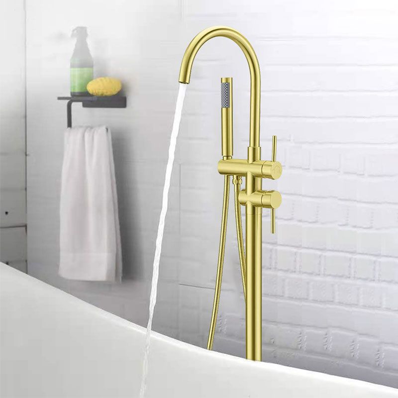 Single Handle Freestanding Tub Filler Floor Mount Bathtub Faucet with Handheld Shower (Gold)
