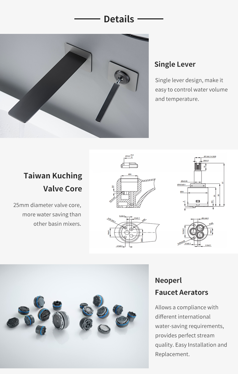 Advanced gun gray design makes the faucet more artistic. The durable valve core guarantees the quality problem of the tap. Hot and cold water inlet offering a more comfortable using experience.