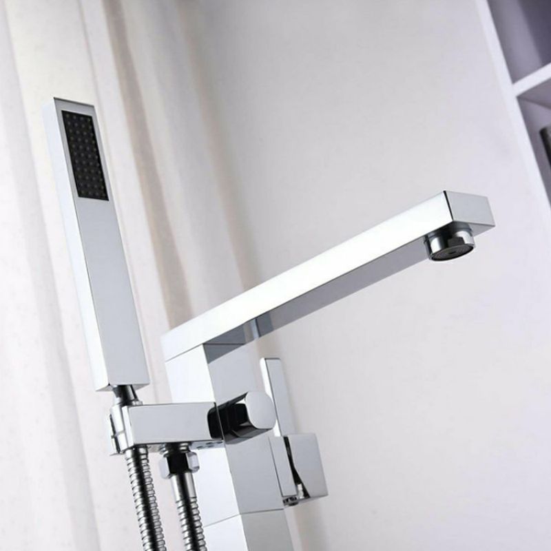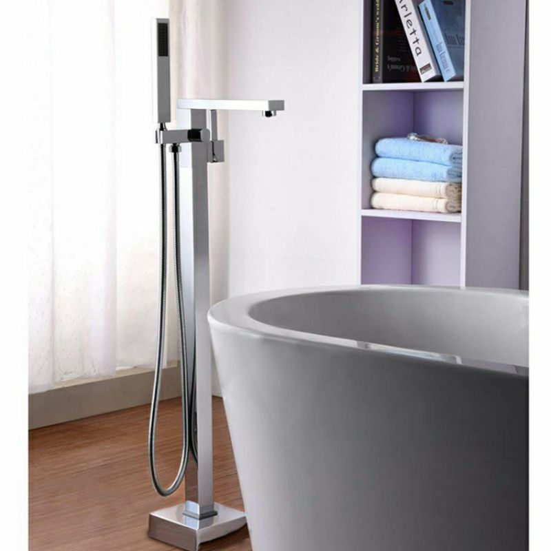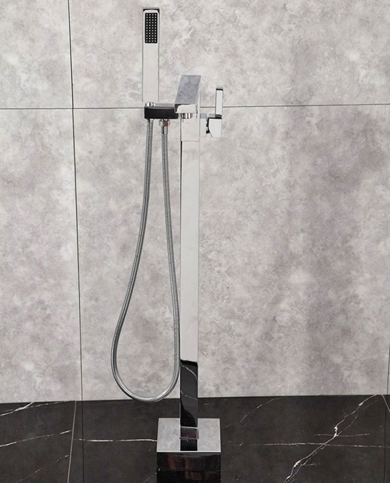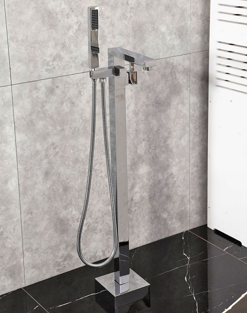 Floor Mount Tub Filler Single Handle Brass Tap with Hand Shower and Swivel Spout Chrome Freestanding tub mixer