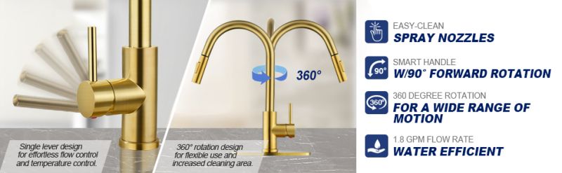 Kitchen Sink Mixer Taps Deck Plate Golden 3 Way Rotatable Water Mixer Best Kitchen Faucet grifos de cocina