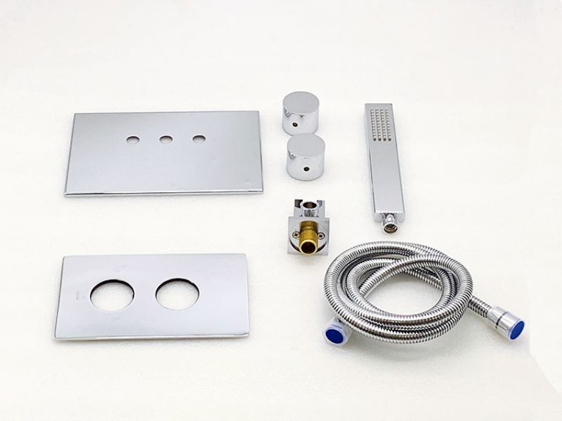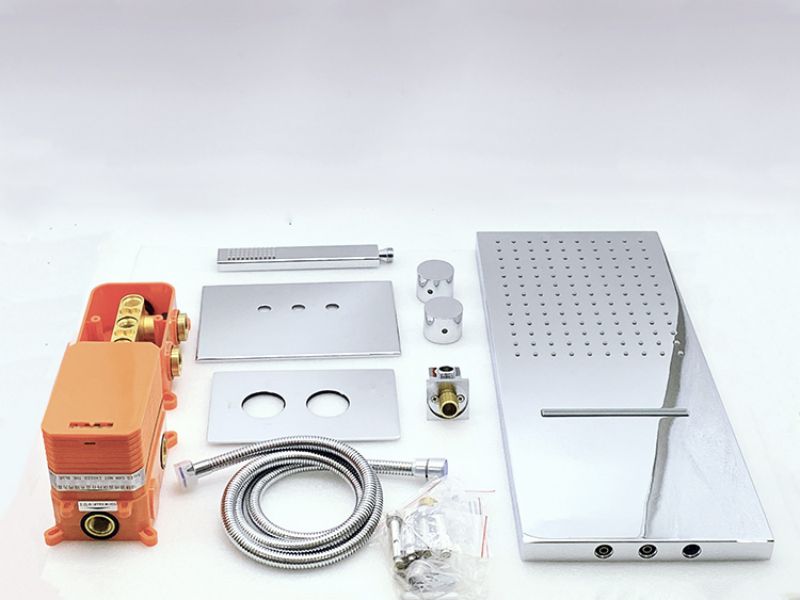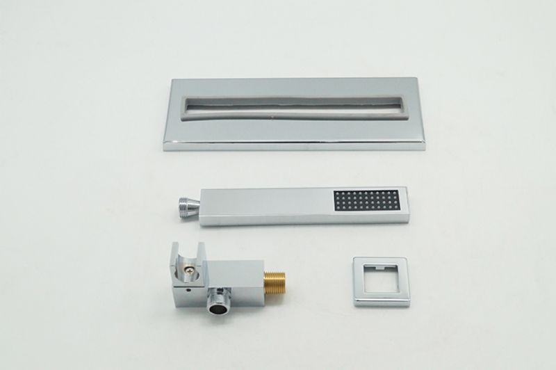 Square chrome big shower head for bathroom use. Dual-function shower seat, offering you the most comfortable bathing experience.