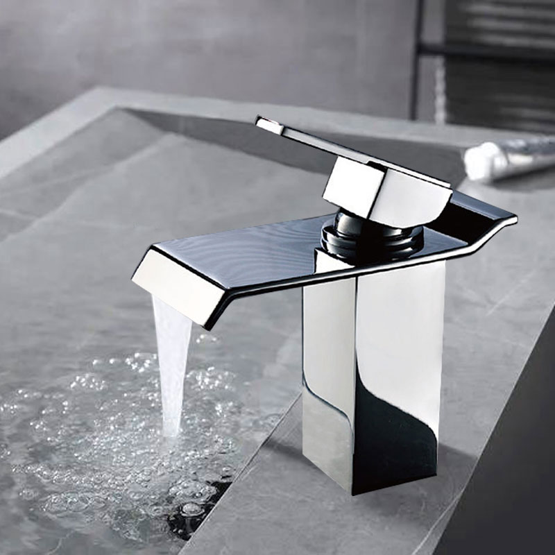 Economical Brass Sink Faucet Single Hole Hot and Cold Water Inlet Waterfall Basin Taps