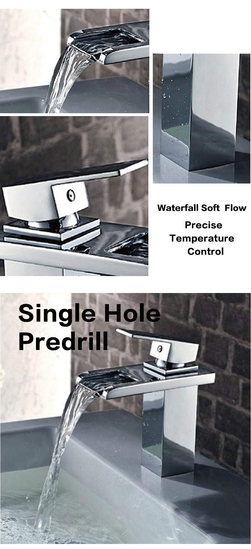 Smooth water flow, high water pressure, high flow rate. The width increases the area of flowing water. Single handle bathroom faucet, Easy adjustment of water flow and temperature.