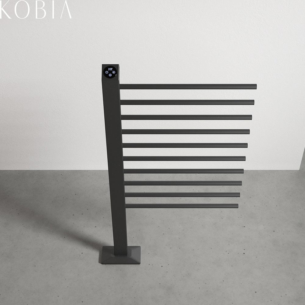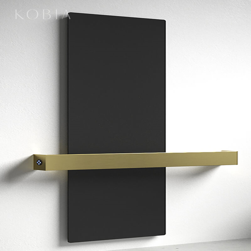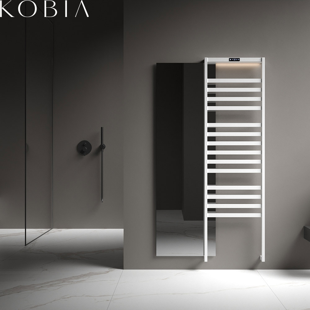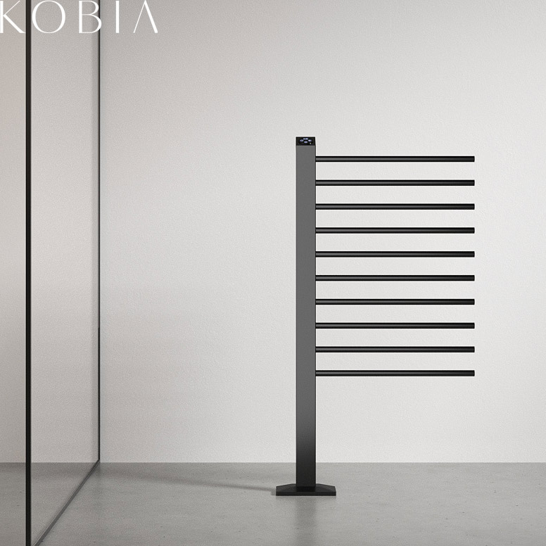Heated towel rail and bathrobe warmer made of high grade copper and powered by low-voltage electricity . Thanks to its modular design, available in different lengths of towel rail according to the project requirements, KOBIA's clean lines are a perfect fit for any domestic setting.