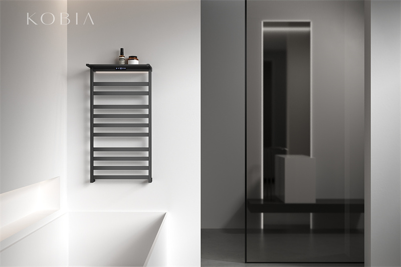 Heated towel rail and bathrobe warmer made of high grade 304 stainless steel and powered by low-voltage electricity . Thanks to its modular design, available in different lengths of towel rail according to the project requirements, KOBIA's clean lines are a perfect fit for any domestic setting.