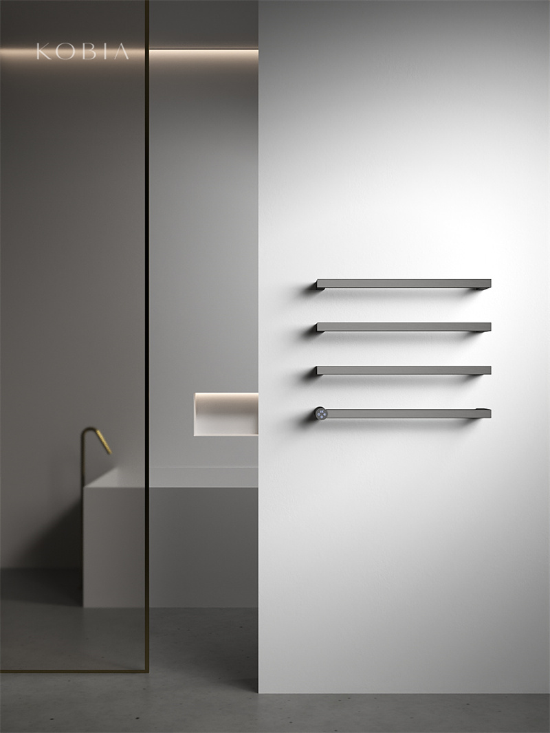 Electric towel rail and bathrobe warmer made of 304 stainless steel and powered by low-voltage electricity . Thanks to its modular design, available in different lengths of towel rail according to the project requirements, Cobuild’s clean lines are a perfect fit for any domestic setting.