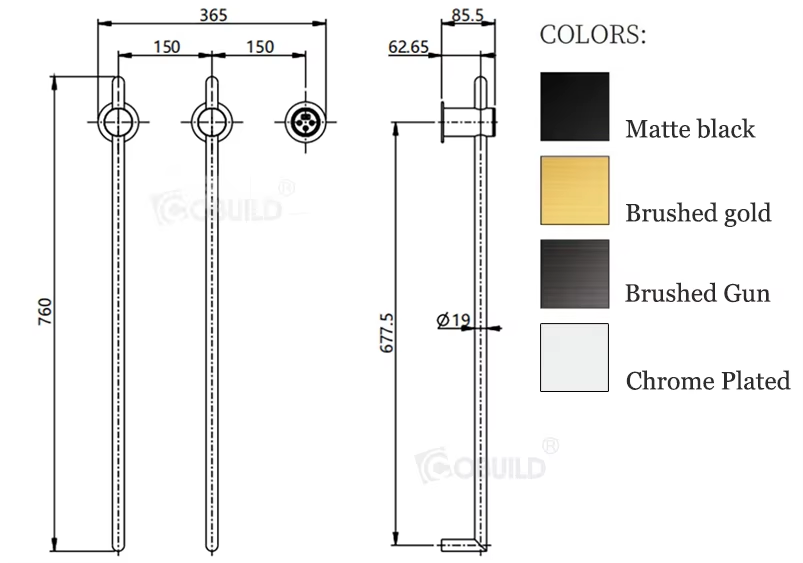 Electric towel rail and bathrobe warmer made of brass and powered by low-voltage electricity. Thanks to its modular design, available in different lengths of towel rail according to the project requirements, Cobuild’s clean lines are a perfect fit for any domestic setting.